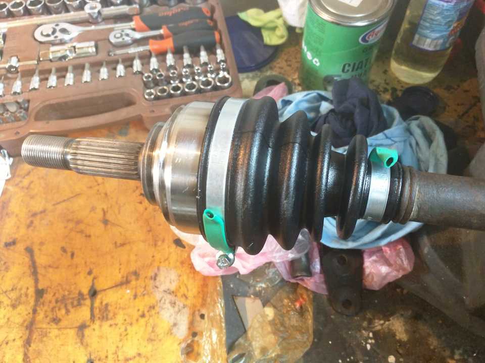 Если ШРУС уже закреплён, надо обжать хомут на пыльнике. Но сначала можно добавить ещё чуть-чуть смазки.