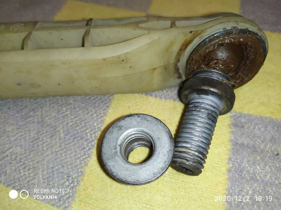 Теперь придерживая гайку на самой косточке ключом на 19 открутить крепежный болт до конца.