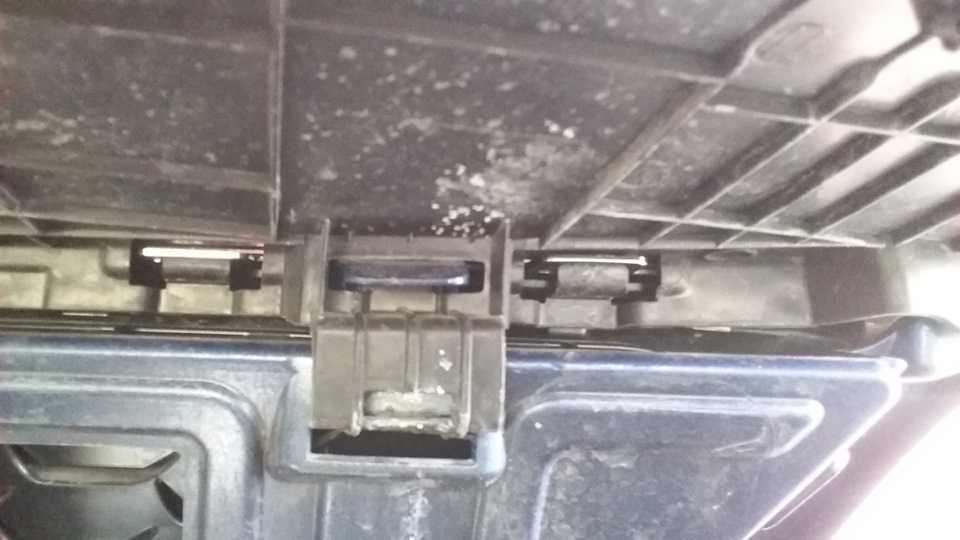 Для начала нужно открутить четыре фиксатора в моторном отсеке. Болты хорошо видны и легко доступны.