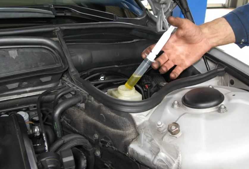 В вытекающей жидкости должны отсутствовать пузырьки воздуха. После повторения операции для второго переднего колеса, необходимо отключить устройство для замены от бачка, проверить в нем уровень тормозной жидкости, и закрыть сам бачок.
