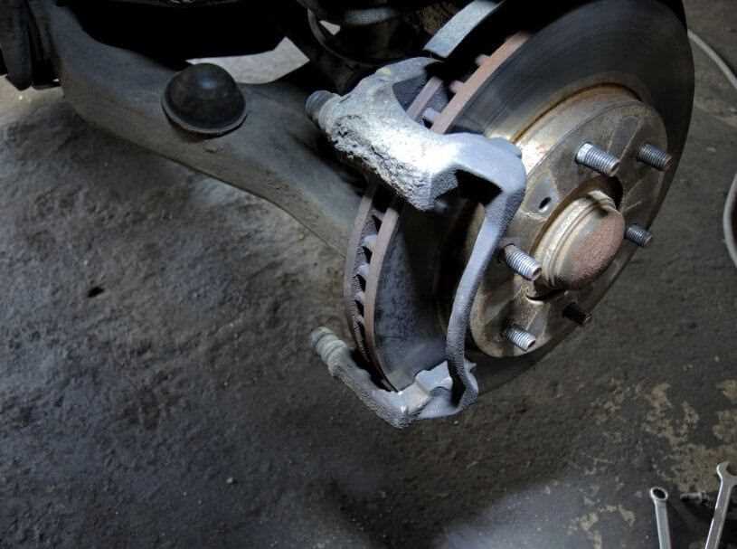 Перед началом замены тормозных колодок необходимо проверить толщину тормозных дисков и износ тормозных колодок. Для этого необходимо снять колеса и осмотреть диски и колодки.