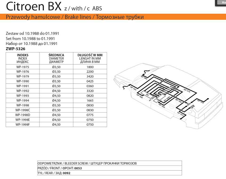 Коротко и важно:-Длина трубки от блока АБС до заднего левого колеса равняется примерно 4.5 метра-Резьба заднего штруца — 10-Резьба переднего — 12-Тормозная трубка заднего левого колеса, входит в блок АБС под гравировкой HL