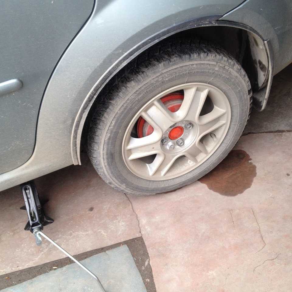После снятия тормозных колодок нужно сразу зафиксировать поршни колесного цилиндра любым доступным способом. Для этих целей может подойти любой отрезок проволоки или резиновый жгут. Если этого не сделать, поршни могут полностью выйти из цилиндра, что повлечет за собой утечку тормозной жидкости.